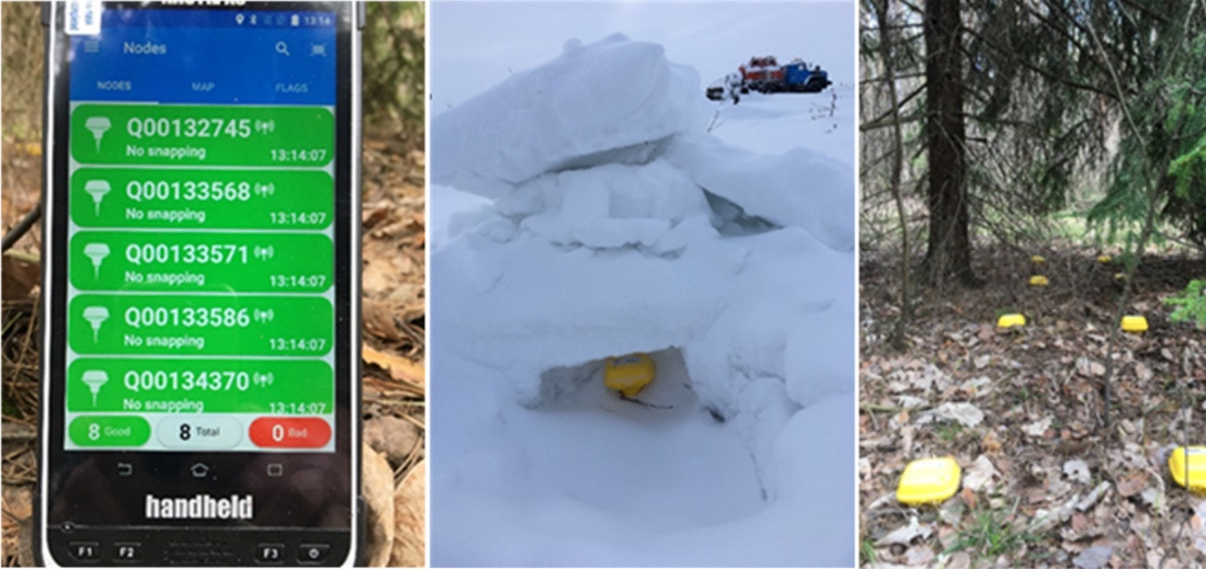 首次试验在北西伯利亚的克拉斯诺亚尔斯克边疆区开展。该地区以主要由气候条件引起的极具挑战性的地震作业而闻名。若干位置的节点被埋在雪中,部分埋置深度90厘米,温度达到-30摄氏度。在整个部署期间,Quantum节点能够保持GPS同步,并继续在规范范围内记录,即使是在最深的埋深也能进行记录。