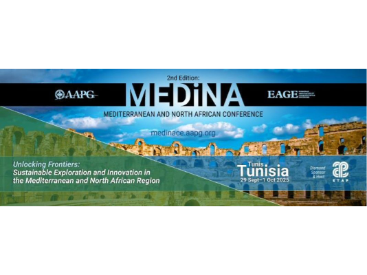 On behalf of the American Association of Petroleum Geologists (AAPG) and the European Association of Geoscientists and Engineers (EAGE), it gives us great pleasure to announce the second edition of the Mediterranean and North African Conference (MEDiNA) under the theme 'Unlocking Frontiers: Sustainable Exploration and Innovation in the Mediterranean and North African Region'. The event will take place from 29 September - 1 October 2025 in Tunis, Tunisia. The event is being hosted by ETAP with confirmed support from NOC's, IOC's, technology and service providers, along with other agencies from across the region. With a strong foundation laid during its inaugural edition in 2022, the forthcoming 2025 conference is poised to deliver an even more enriching and impactful experience. The event will deliver technical resources, programs, workshops and field trips in support of the Mediterranean and North African oil and gas industry. The conference program will encompass topical panel discussions and technical sessions comprised of research-based presentations with the objective of exchanging knowledge, best practices, and experience among participants as well as networking with colleagues. The event will be regionally focused, and we invite proposals from across the North African and Mediterranean region, as well as globally.